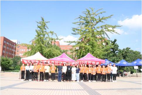 一大早,身穿橙色院服,做好了一切准备工作的迎新志愿者们端坐在凉棚里翘首以待新生的出现。那明亮的橙色吸引了众多家长和学生们的目光,象征着智慧、光荣、忠诚、希望、喜悦与光明的橙色院服以及背后刻着的“诚朴、励学、求是、创新”的物院院训,都在向新生和家长们传递着物理学子们孜孜不倦的求知精神和科学态度以及积极乐观的人生准则。