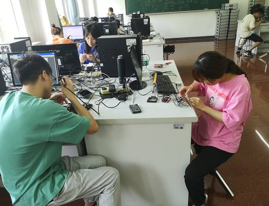 今年会官方网站于6月22日—6月25日,在齐维毅教授的指导下,针对2018级电子信息工程11名学生开展了“单片机应用设计实践训练”实训项目训练。本项目以单片机应用为核心,综合“单片机原理与应用”、“模拟电子技术基础”、“数字电子技术基础”、“计算机控制技术”、“传感器原理”和“C51语言”等课程,分层次、递进式进行综合性设计实验,包括单片机最小系统、流水灯、秒表、限时发言器、数字电压表、数字欧姆表和数字温度计。教学以学生为主体,在老师指导下,每个学生自主完成设计、制作、编程和调试任务。教学过程分为布置任务、搜集资料、设计电路、硬件制作、编写程序和系统调试6个阶段,结束后编写设计报告。