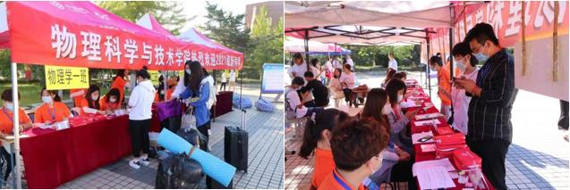 清晨的校园中,志愿者们在各自岗位上等待新同学的到来,红底白字的醒目条幅、助理辅导员们的热情问候、学院领导和老师的关切慰问无不彰显着物院对莘莘学子的欢迎。