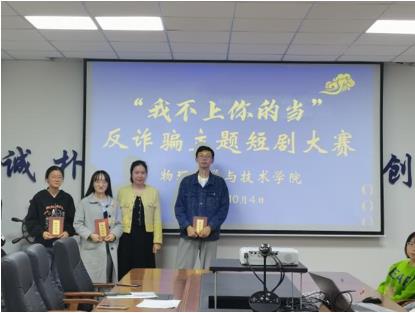 为营造浓“反诈防诈”的校园氛围,提高学生自我防诈骗意识和能力,丰富同学们国庆假期生活,今年会官方网站于10月4日下午14:30,在实验中心434会议室开展“同迎国庆,剧在易起”之“我不上你的当”反诈骗为主题的校园短剧大赛,出席本次比赛的有团委书记朱春梅老师及大众评审团和参赛选手,比赛由2020级刘成龙同学主持。