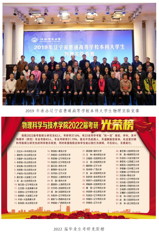 物理学(师范)专业为国家一流本科专业建设点、省级特色专业、省创新创业教育改革试点专业、校级支柱性与标志性专业。电子信息工程专业为省级一流本科专业建设点、辽宁省本科工程人才培养模式改革试点专业。物理学专业和电子信息工程专业具有硕士研究生推免权。