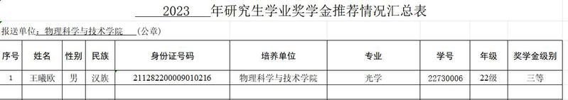 公示期自2023年10月20日至10月26日,如有异议,请在公示期内如实提供证明材料交到学院研究生学业奖学金评审委员会。