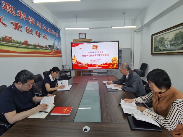 5月17日,学院领导班子理论学习读书班在实验中心440会议室进行党纪学习教育第三次专题学习会议,集体学习《中国共产党纪律处分条例》 (以下简称条例)部分条文。学院领导班子理论学习读书班成员张忠军、申海、李柳、张浩华参加学习,专职组织员张雨列席。张忠军书记主持会议并作总结发言。