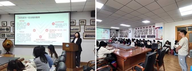 为进一步加强我院师范生从教信念的培养,帮助在校师范生养成良好学习习惯,提升师范生培养质量。2024年4月18日学院特邀营口市优秀教师、营口市中小学骨干教师、从教24年的盖州市第一高级中学一线教师——吕宏老师为我院师范生做题为“如何成为一名优秀的高中教师”的专题报告,参加此次报告的有院党委副书记张礼庆、团委书记朱春梅、辅导员李东宇以及我院部分师范生。报告由辅导员侯春晓老师主持。
