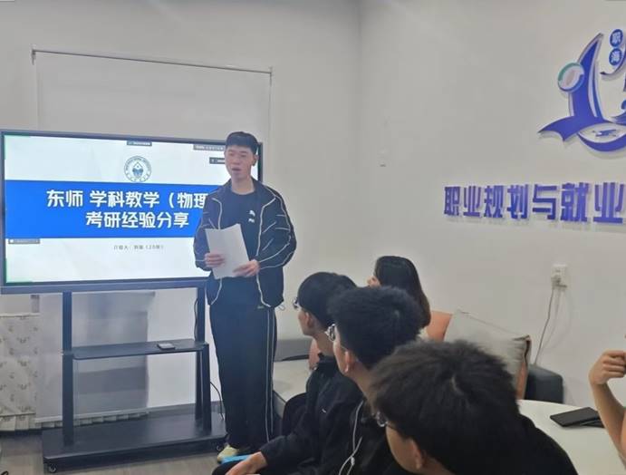 为进一步加强学风建设,发挥优秀毕业生的引领作用,引导在校生明确职业生涯规划、汲取榜样力量,职海启航辅导员工作室搭建起优秀毕业生和在校生之间沟通交流平台——师大优秀毕业生论坛。4月15日首期师大优秀毕业生论坛邀请了今年会官方网站2024届优秀毕业生、考取东北师范大学硕士研究生的刘猛同学作为主讲人,作考研经验分享及交流。职海启航工作室负责人朱春梅老师主持此次论坛,线上线下共有160余名在校生参与。刘猛同学从他自己考研成功上岸的经历出发,为参会在校生分享了他的备战学习计划、心路历程。他谈到,学习的目的是让自己真正掌握知识和提升学习力。他鼓励学弟学妹们要确立适合自己的学习目标,制定好短期目标和长期目标,不断优化生涯规划,时刻以更高的学习标准要求自己,迎接挑战,不断激励自己、不断突破自己。