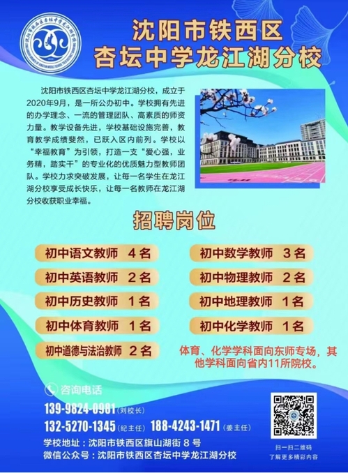 沈阳市铁西区杏坛中学龙江湖分校招聘简章