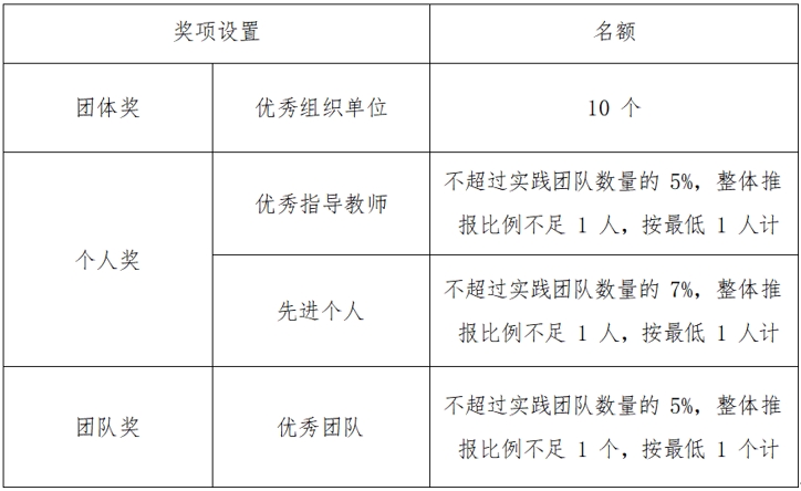 申报优秀组织单位的学院团委需提交事迹材料,从工作部署、推进措施、组织动员、活动情况、总体数据、实践成效、创新做法等方面总结经验。校团委根据各学院的立项数量、结项数量、被媒体宣传报道的次数以及事迹材料等方面综合评定。