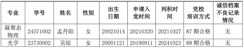 2025 年下半年研究生拟发展对象情况(2名)